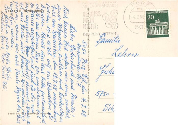 73902897 Eil-Porz Koeln Rhein Humboldstrasse postalisch gelaufen Erhaltung siehe scans [WerneD78] alte Postkarte Wern Katcode 11110005315000