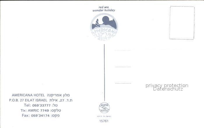 Eilat Eilath Israel Americana Hotel postalisch nicht gelaufen Erhaltung siehe scans