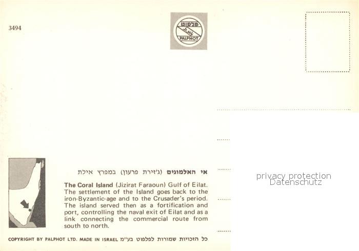 Eilat Eilath Israel Coral Island Gulf of Eilat postalisch nicht gelaufen Erhaltung siehe scans [FriedD77]