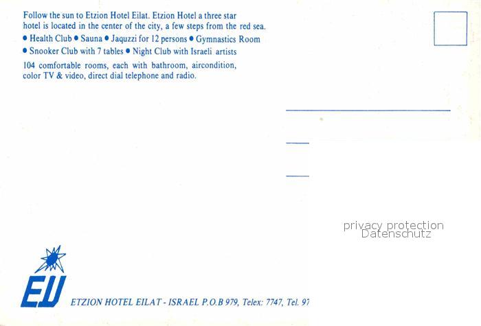 Eilat Eilath Israel Etzion Hotel postalisch nicht gelaufen Erhaltung siehe scans [NatalD47]