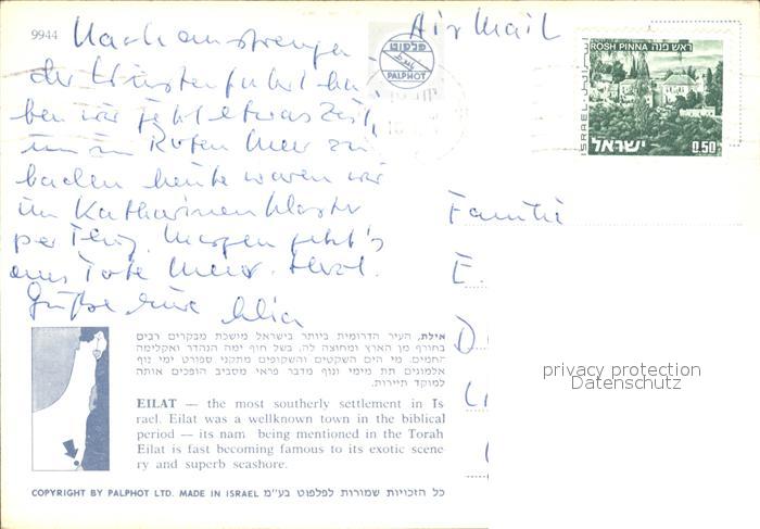 old postcard Eilat Eilath Israel Strand postalisch gelaufen Erhaltung siehe scans