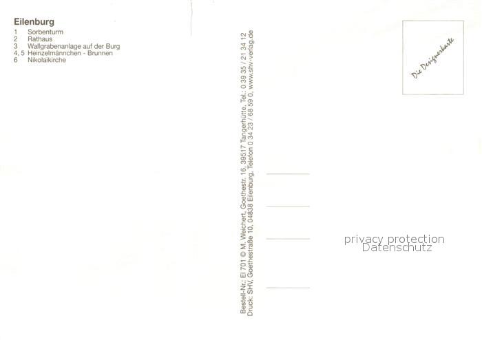 73263874 Eilenburg Sorbenturm Rathaus Wallgrabenanlage Burg Heinzelmaennchen Brunnen Nikolaikirche postalisch nicht gelaufen Erhaltung siehe scans [WerneD78] KatCode: 11110014374090