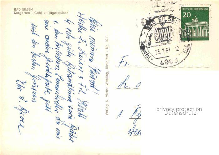 72701366 alte Postkarte Eilsen Bad Kurgarten Cafe Jaegerstuben postalisch gelaufen Erhaltung siehe scans [KathaD79] KatCode: 11110003257005
