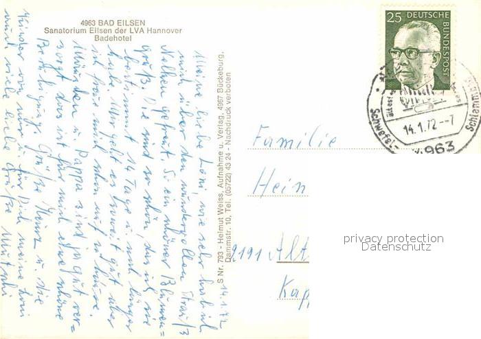 72796841 alte Postkarte Eilsen Bad Sanatorium Badehotel postalisch gelaufen Erhaltung siehe scans [KathaD81] KatCode: 11110003257005