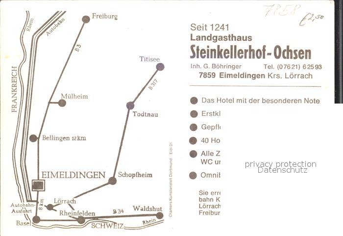 72921528 Eimeldingen Landgasthaus Steinkellerhof Ochsen postalisch nicht gelaufen Werbekarte (keine Postkarte) Erhaltung siehe scans [WerneD48] KatCode: 11110008336019