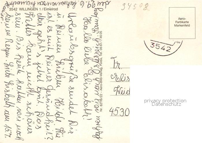 73673287 alte Postkarte Eimelrod Panorama Erholungsort Landschaft postalisch gelaufen Erhaltung siehe scans [FriedD77] KatCode: 11110006635022