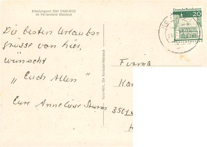 73900351 alte Postkarte Eimelrod Willingen Upland Panorama Erholungsort im Ferienland Waldeck postalisch gelaufen Erhaltung siehe scans [FriedD77] KatCode: 11110006635022
