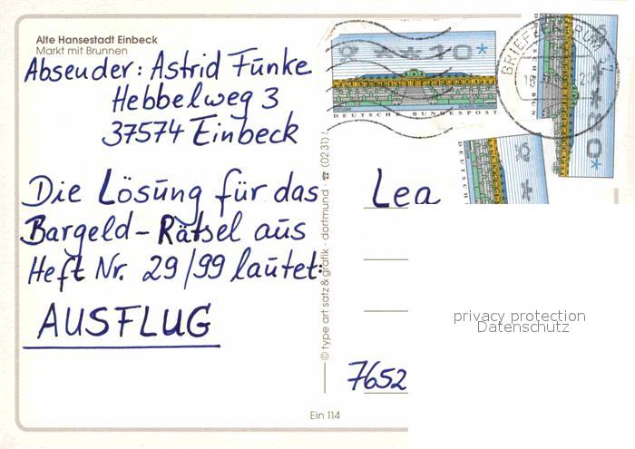 72719116 alte Postkarte Einbeck Niedersachsen Alte Hansestadt Markt Brunne Fachwerk postalisch gelaufen Erhaltung siehe scans [LiesaD40] KatCode: 11110003155004