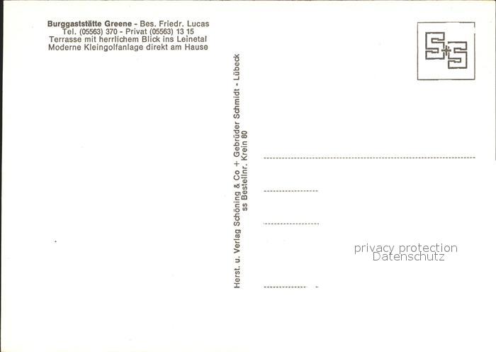 72270511 Einbeck Niedersachsen Burggaststaette Greene postalisch nicht gelaufen Erhaltung siehe scans KatCode: 11110003155004