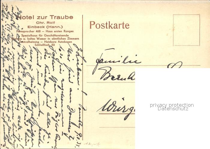 32108793 Einbeck Niedersachsen Hotel zur Traube postalisch nicht gelaufen KatCode: 11110003155004