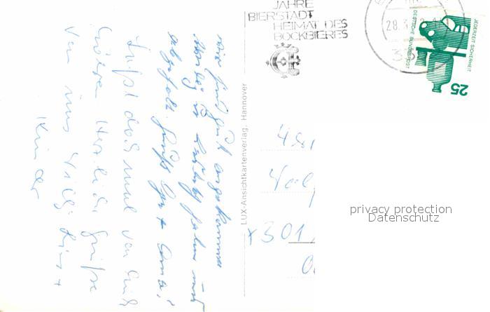 72719851 alte Postkarte Einbeck Niedersachsen Kirche St Bartholomae Kapelle Brodhaus Markt Rathaus Marktstrasse postalisch gelaufen Erhaltung siehe scans [FriedD77] KatCode: 11110003155004