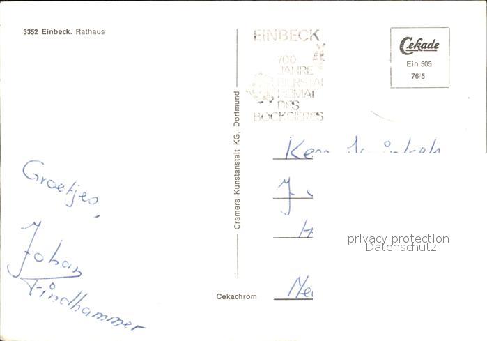 72423698 alte Postkarte Einbeck Niedersachsen Rathaus Brunnen postalisch gelaufen Erhaltung siehe scans KatCode: 11110003155004