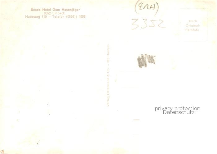 73859406 Einbeck Niedersachsen Reses Hotel zum Hasenjaeger postalisch nicht gelaufen Erhaltung siehe scans [FriedD77] KatCode: 11110003155004