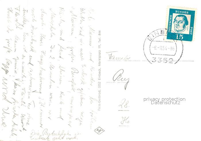 72951572 alte Postkarte Einbeck Niedersachsen Storchenturm Rathaus Brodhaus Muensterkirche Strassenpartie Baeckerwall Renaissance Buergerhaus postalisch gelaufen Erhaltung siehe scans [FriedD77] KatCode: 11110003155004