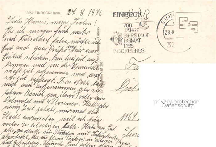 73859019 alte Postkarte Einbeck Niedersachsen Strassenpartie postalisch gelaufen Erhaltung siehe scans [WerneD78] KatCode: 11110003155004