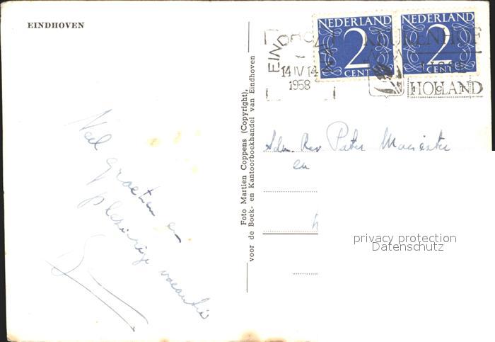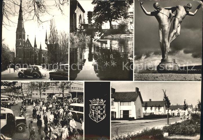 old postcard Eindhoven Netherlands Kirche Kanal Skulptur Markt Strassenpartie postalisch gelaufen Erhaltung siehe scans