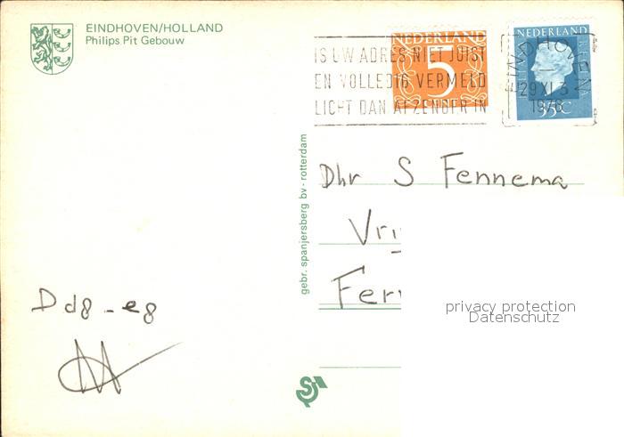 old postcard Eindhoven Netherlands Philips Pit Gebouw postalisch gelaufen Erhaltung siehe scans