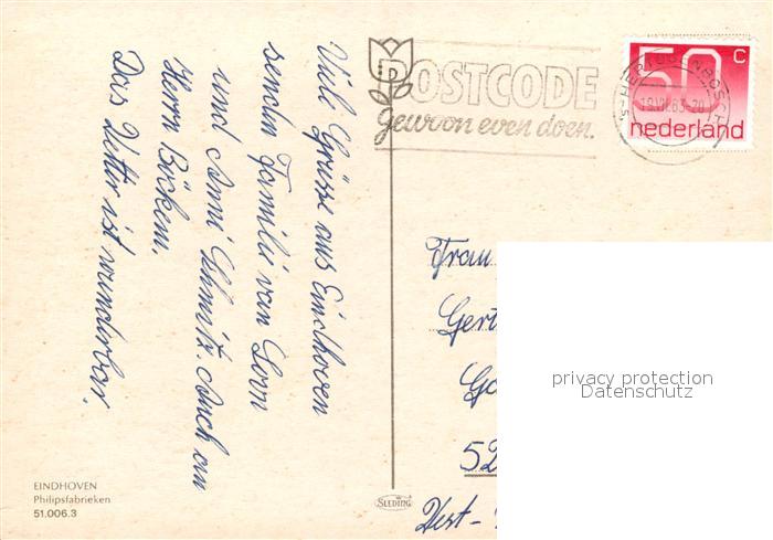 old postcard Eindhoven Netherlands Philipsfabrieken postalisch gelaufen Erhaltung siehe scans [FriedD77]