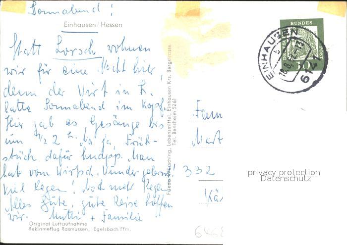 32187095 alte Postkarte Einhausen Hessen Fliegeraufnahme postalisch gelaufen Erhaltung siehe scans KatCode: 11110006431006