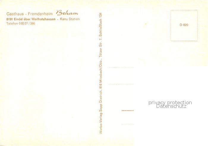 73833864 Einoed Dietramszell Gasthaus Fremdenheim Beham postalisch nicht gelaufen Erhaltung siehe scans [FriedD77] KatCode: 11110009173118