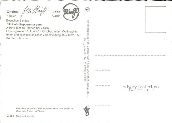 72566461 Einoede Villach Treffen Elli Riehl Puppenmuseum postalisch nicht gelaufen Erhaltung siehe scans [LiesaD40] KatCode: 11390211020201