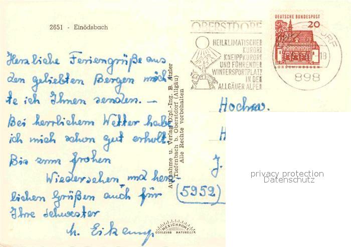72723117 alte Postkarte Einoedsbach Bergdorf Alpenpanorama postalisch gelaufen Erhaltung siehe scans [FriedD77] KatCode: 11110009780133