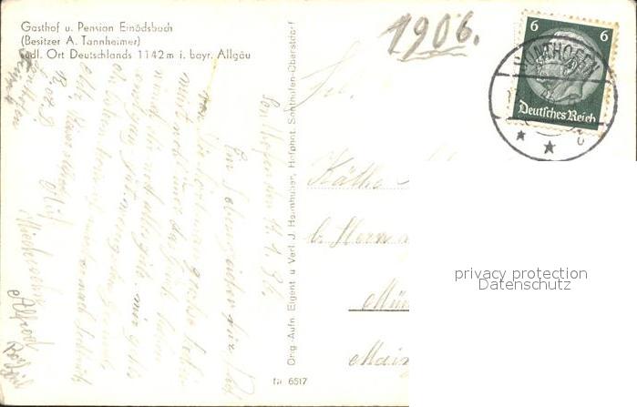 71838741 alte Postkarte Einoedsbach Gasthof Pension Alpen postalisch gelaufen Erhaltung siehe scans KatCode: 11110009780133