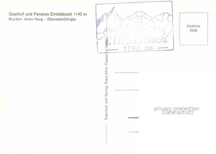 72781071 Einoedsbach Gasthof Pension Alpen postalisch nicht gelaufen Erhaltung siehe scans [FriedD77] KatCode: 11110009780133