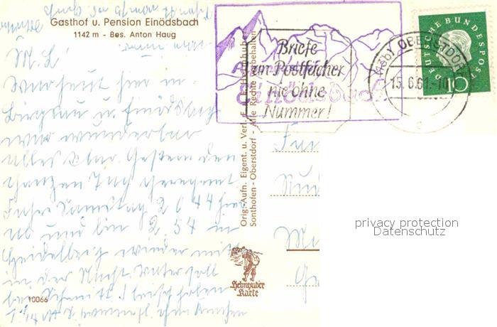 72894390 alte Postkarte Einoedsbach Gasthof Pension Alpenpanorama postalisch gelaufen Erhaltung siehe scans [FriedD77] KatCode: 11110009780133