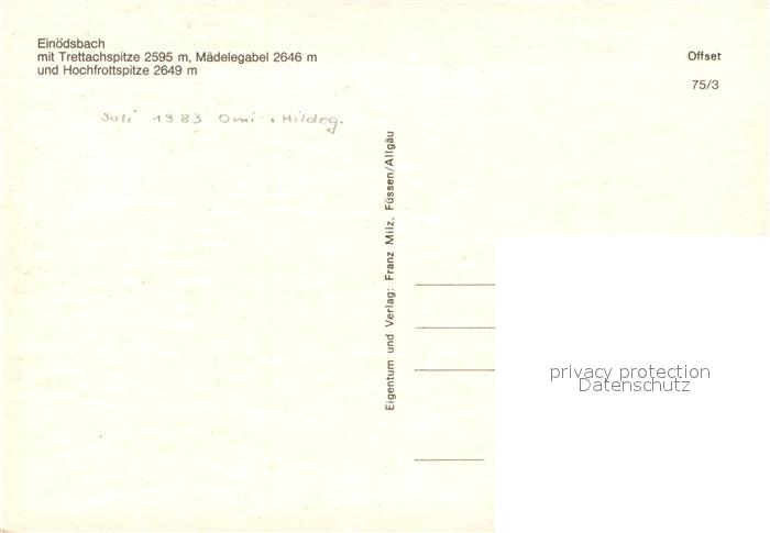 73252462 Einoedsbach mit Trettachspitze Maedelegabel und Hochfrottspitze postalisch nicht gelaufen Erhaltung siehe scans [WerneD78] KatCode: 11110009780133