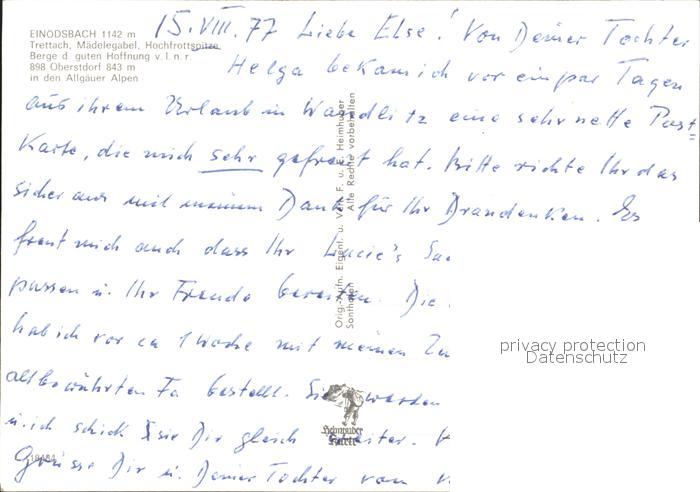 72368887 Einoedsbach Trettach Maedelegabel Hochfrottspitze postalisch nicht gelaufen Erhaltung siehe scans KatCode: 11110009780133