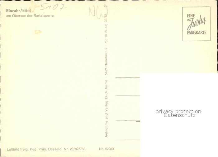 72022078 Einruhr Eifel am Obersee der Rurtalsperre Fliegeraufnahme postalisch nicht gelaufen Erhaltung siehe scans KatCode: 11110005354028