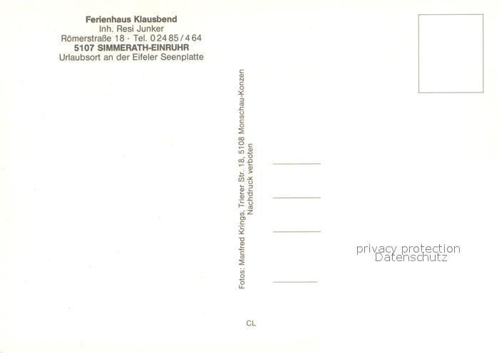 73646629 Einruhr Ferienhaus Klausbend Panorama Eifeler Seenplatte postalisch nicht gelaufen Erhaltung siehe scans [FriedD77] KatCode: 11110005354028