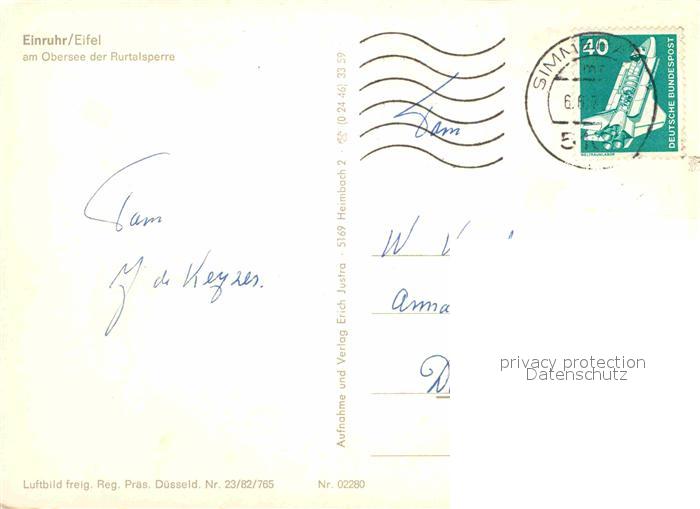 72653693 alte Postkarte Einruhr Fliegeraufnahme Obersee der Rurtalsperre postalisch gelaufen Erhaltung siehe scans [LiesaD40] KatCode: 11110005354028