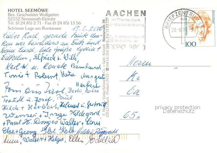 73616444 alte Postkarte Einruhr Hotel Seemoewe Gaststube Terrasse Rurstausee postalisch gelaufen Erhaltung siehe scans [WerneD78] KatCode: 11110005354028