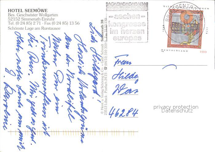 72034638 alte Postkarte Einruhr Hotel Seemoewe Panorama Rurstausee postalisch gelaufen Erhaltung siehe scans KatCode: 11110005354028