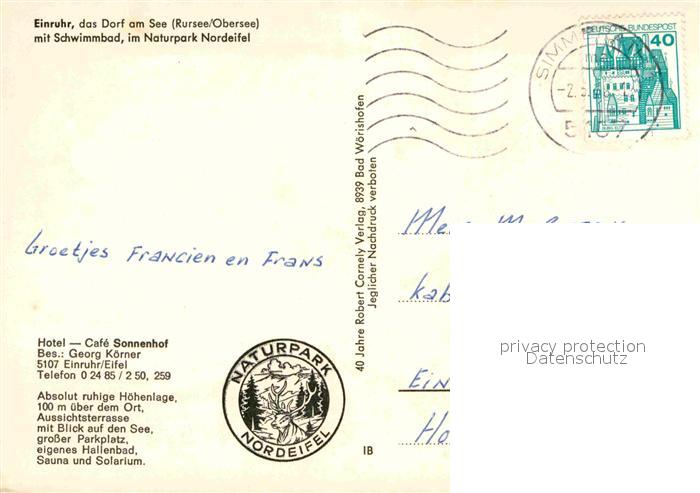 72869673 alte Postkarte Einruhr Rursee Obersee Schwimmbad postalisch gelaufen Erhaltung siehe scans [LiesaD40] KatCode: 11110005354028