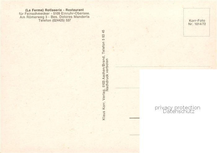73844680 Einruhr Simmerath La Ferme Rotisserie Restaurant postalisch nicht gelaufen Erhaltung siehe scans [WerneD78] KatCode: 11110005354028