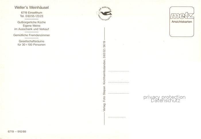 73332154 Einselthum Wellers Weinhaeusel postalisch nicht gelaufen Erhaltung siehe scans [LiesaD40] KatCode: 11110007333018