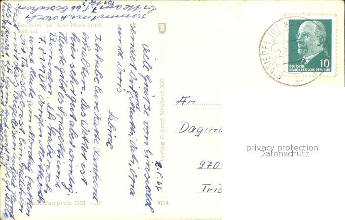 72387112 alte Postkarte Einsiedel Chemnitz Rathaus postalisch gelaufen Erhaltung siehe scans KatCode: 11110014161000