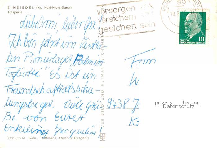 72648763 alte Postkarte Einsiedel Chemnitz Talsperre postalisch gelaufen Erhaltung siehe scans [LiesaD40] KatCode: 11110014161000