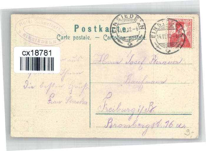 10723667 alte Postkarte Einsiedeln SZ Einsiedeln postalisch gelaufen KatCode: 11470170475422