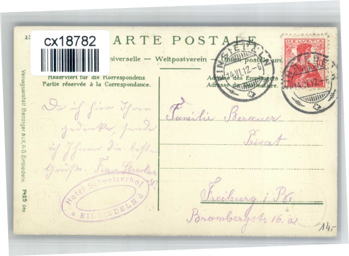 10723668 alte Postkarte Einsiedeln SZ Einsiedeln St Jakob Denkmal Tell Denkmal Winkelried Denkmal National Denkmal postalisch gelaufen KatCode: 11470170475422