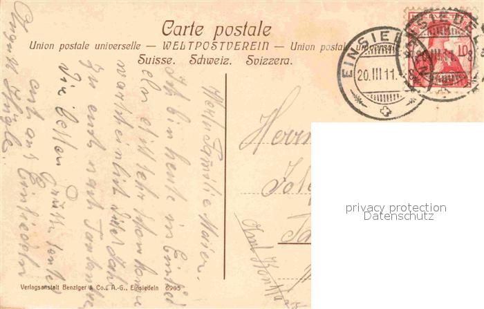 12711919 alte Postkarte Einsiedeln SZ Kloster Einsiedeln postalisch gelaufen Erhaltung siehe scans [WerneD78] KatCode: 11470170475422