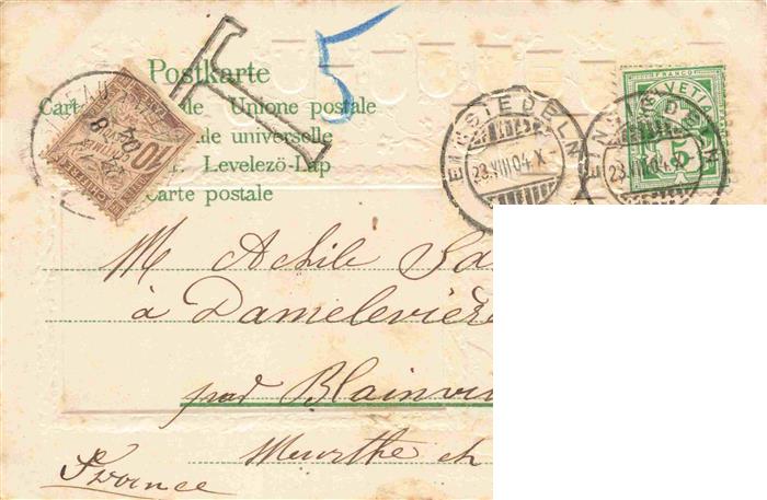 13973967 alte Postkarte Einsiedeln SZ Kloster Marie Bilderrahmen Wappen postalisch gelaufen Erhaltung siehe scans [FriedD77] KatCode: 11470170475422