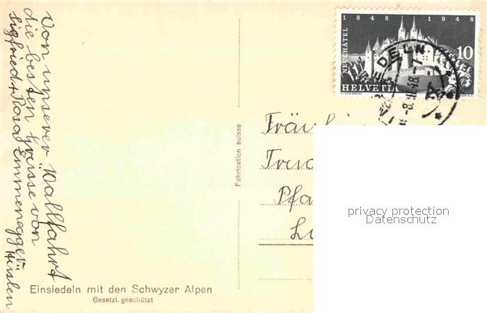 12712710 alte Postkarte Einsiedeln SZ mit Schwyzer Alpen postalisch gelaufen Erhaltung siehe scans [WerneD78] KatCode: 11470170475422