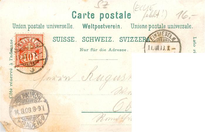 13920598 alte Postkarte Einsiedeln SZ Panorama Hotel Schweizerhof postalisch gelaufen Erhaltung siehe scans [WerneD78] KatCode: 11470170475422