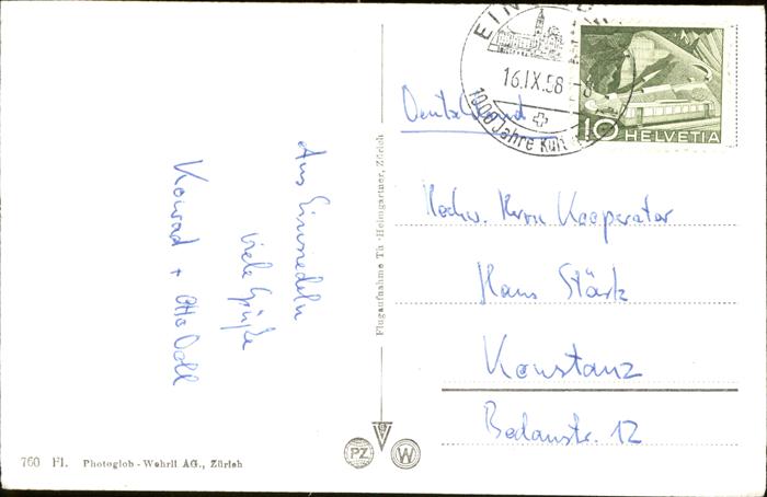 71485904 alte Postkarte Einsiedeln SZ Sihlsee Glaernisch Glarner Alpen Fliegeraufnahme postalisch gelaufen Erhaltung siehe scans KatCode: 11470170475422
