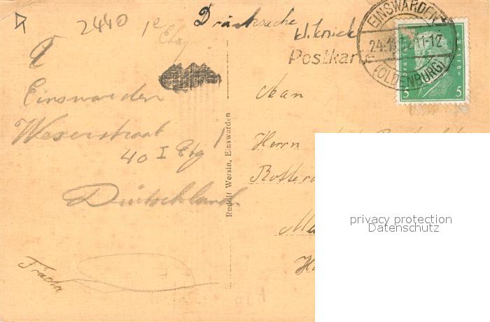 43218570 alte Postkarte Einswarden Gedaechtnisstaette der im WK Gefallenen postalisch gelaufen Erhaltung siehe scans [WerneD78] KatCode: 11110003461007