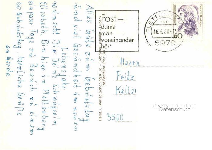 72679714 alte Postkarte Eiringhausen Plettenberg Marktplatz Blick ueber die Stadt postalisch gelaufen Erhaltung siehe scans [FriedD77] KatCode: 11110005962052